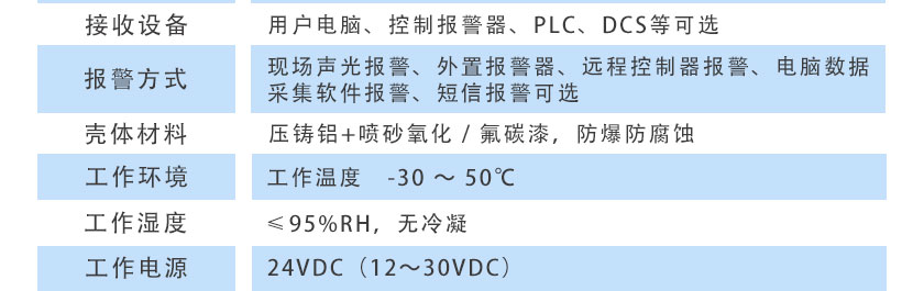 接收设备 | 用户电脑、控制报警器、PLC、DCS等可选 |