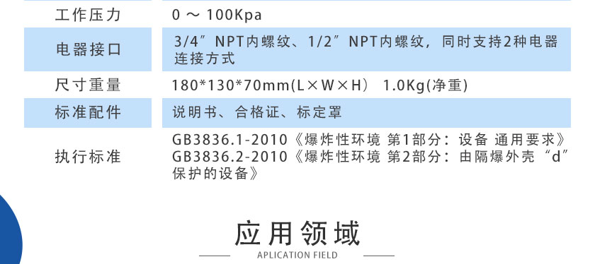 执行标准 | GB3836.1-2010《爆炸性环境 第1部分:设备 通用要求》 |