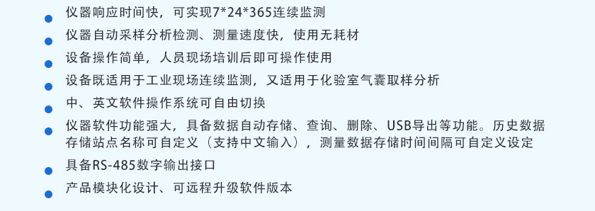 (7)仪器响应时间快,可实现7*24*365连续监测